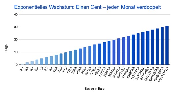 Exponentielles Wachstum: Einen Cent - jeden Monat verdoppelt