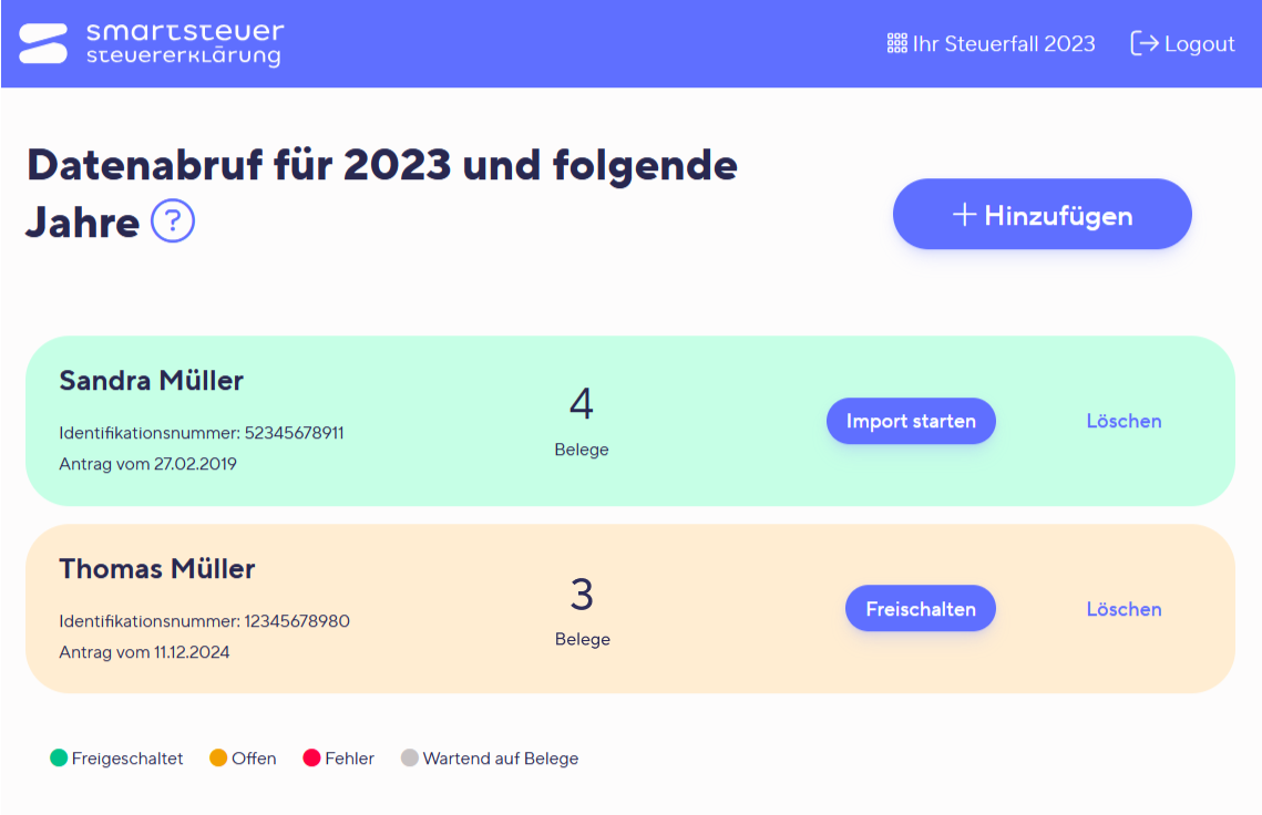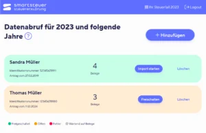- Falls Du mehr als einen freigeschalteten Datenabruf hast (z. B. bei Eheleuten), achte darauf, dass Antrag, Daten und Rolle beim Import zusammenpassen.