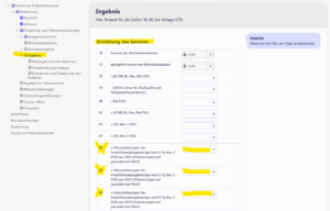 2) Unter Ergebnis – in den Zeilen 84-86 (je nach Jahr der Bildung) unter Hinzurechnung des IABs trage bitte die aufzulösenden Beträge der gebildeten IABs ein.