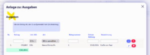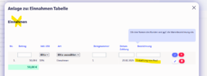 Die Stornorechnung trägt Sophie im Bereich Einnahmen ein, da sie den Betrag von Paul erstattet bekommt hat: