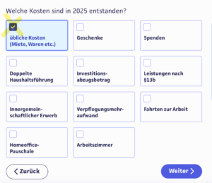 Auf der Anlage EÜR gibt es kein extra Feld für vorweggenommene Betriebsausgaben, diese müssen in der EÜR unter den „normalen“ Ausgaben eingetragen werden.