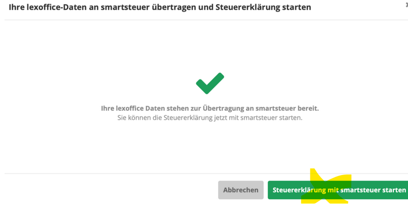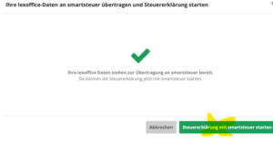 - Das Datenpaket wird zusammengestellt und an smartsteuer übergeben. Klicke einfach auf »Steuererklärung mit smatsteuer erstellen«.
