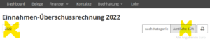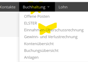 - Klicke oben in der Leiste auf den Punkt »Buchhaltung« und wähle dann die »Einnahmen und Überschussrechnung« aus.