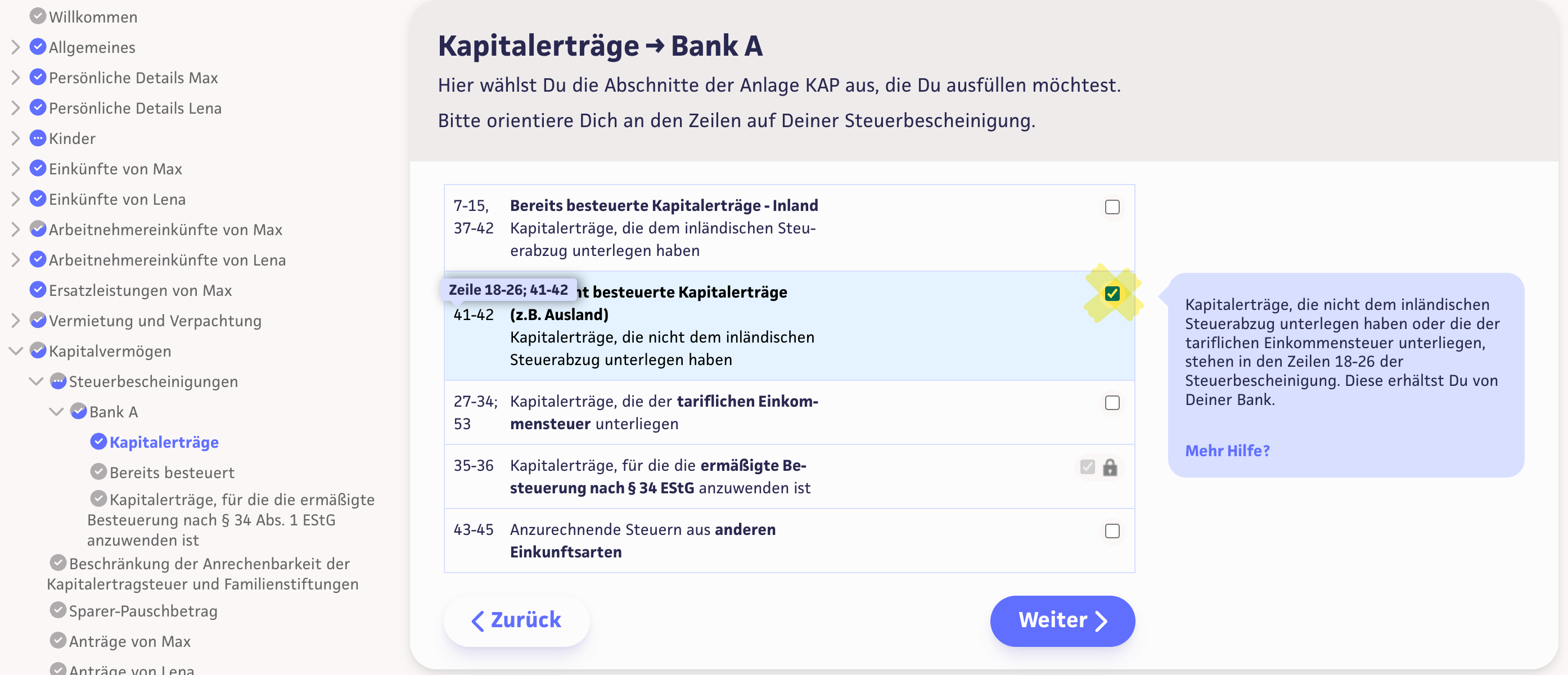 Diese Auswahl findest Du, wenn Du eine Steuerbescheinigung unter Einkünfte aus Kapitalvermögen anlegst.
