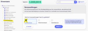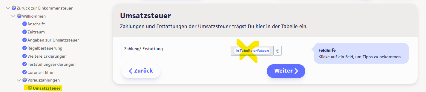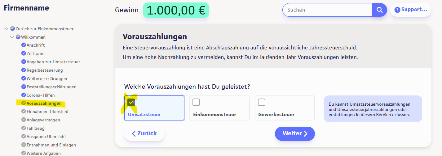 Hier kannst Du Angaben, welche Vorauszahlung Du geleistet hast: