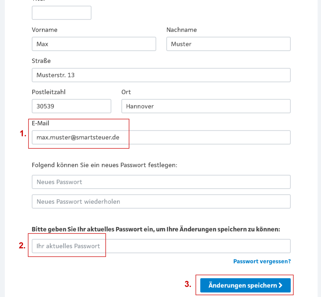 - Gib im Feld »E-Mail« nun Deine richtige Mailadresse in Kleinbuchstaben ein.