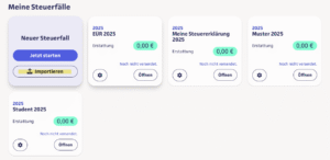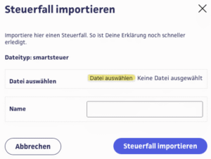 - Anschließend importierst Du den eben gespeicherten Fall bitte wieder über die Import-Funktion auf der Seite »Meine Steuerfälle«: