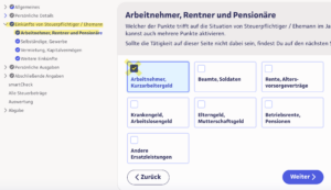 Eine Betriebsrente aus Pensionsfonds, Pensionskassen und Direktversicherungen sowie eine Zusatzversorgungsrente des öffentlichen Dienstes, trägst Du bitte im Bereich »Renteneinkünfte von…« ein. Du hast dort die Auswahl »Leistungen aus Altersvorsorgeverträgen und der betrieblichen Altersversorgung«.