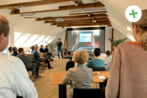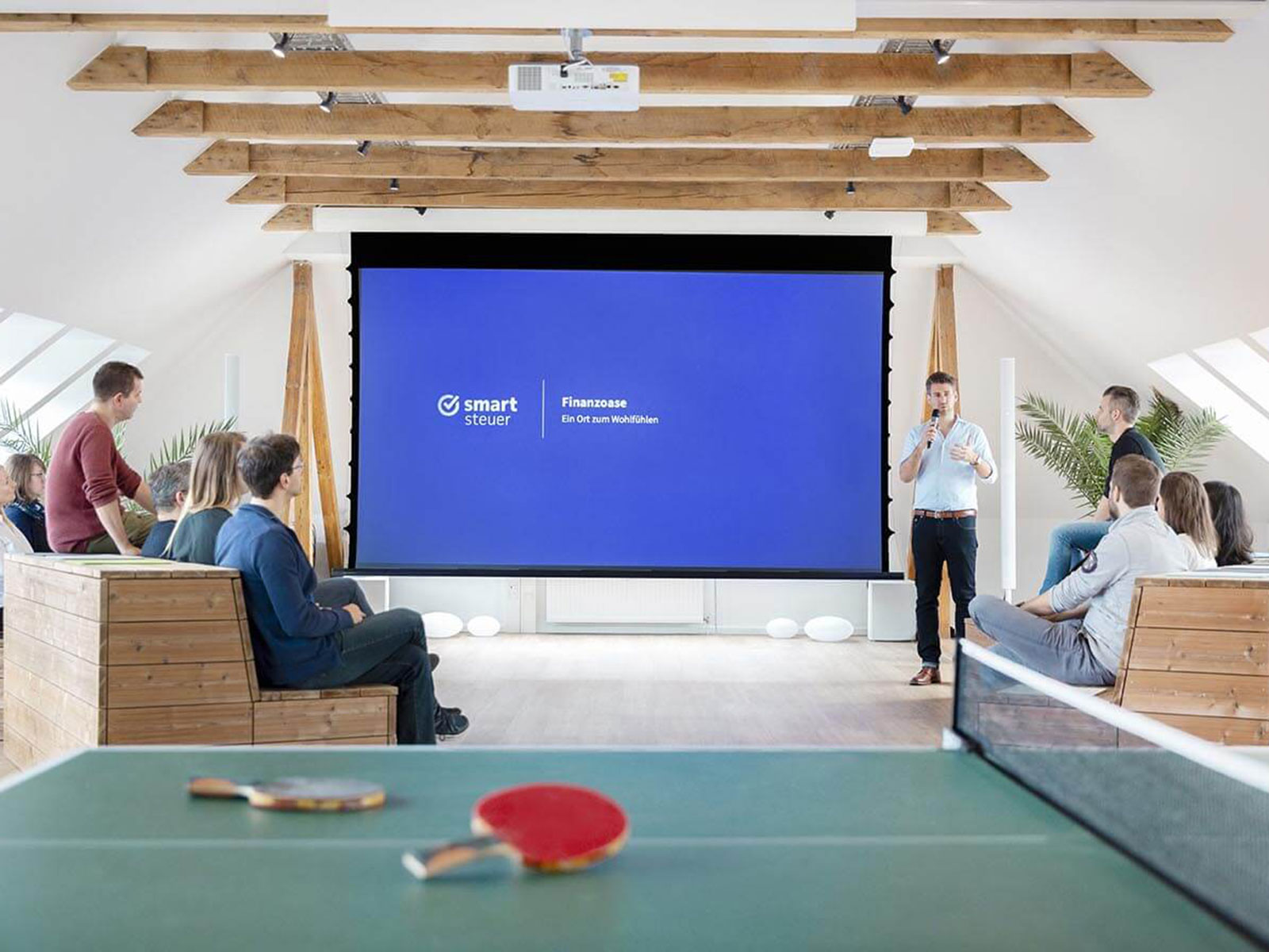 Der Marktplatz ist das Herzstück der Finanzoase. Er bietet dir und deinen Kolleg:innen eine große Eventfläche. Er eignet sich ideal für Konferenzen, Fortbildung oder Firmenfeiern.