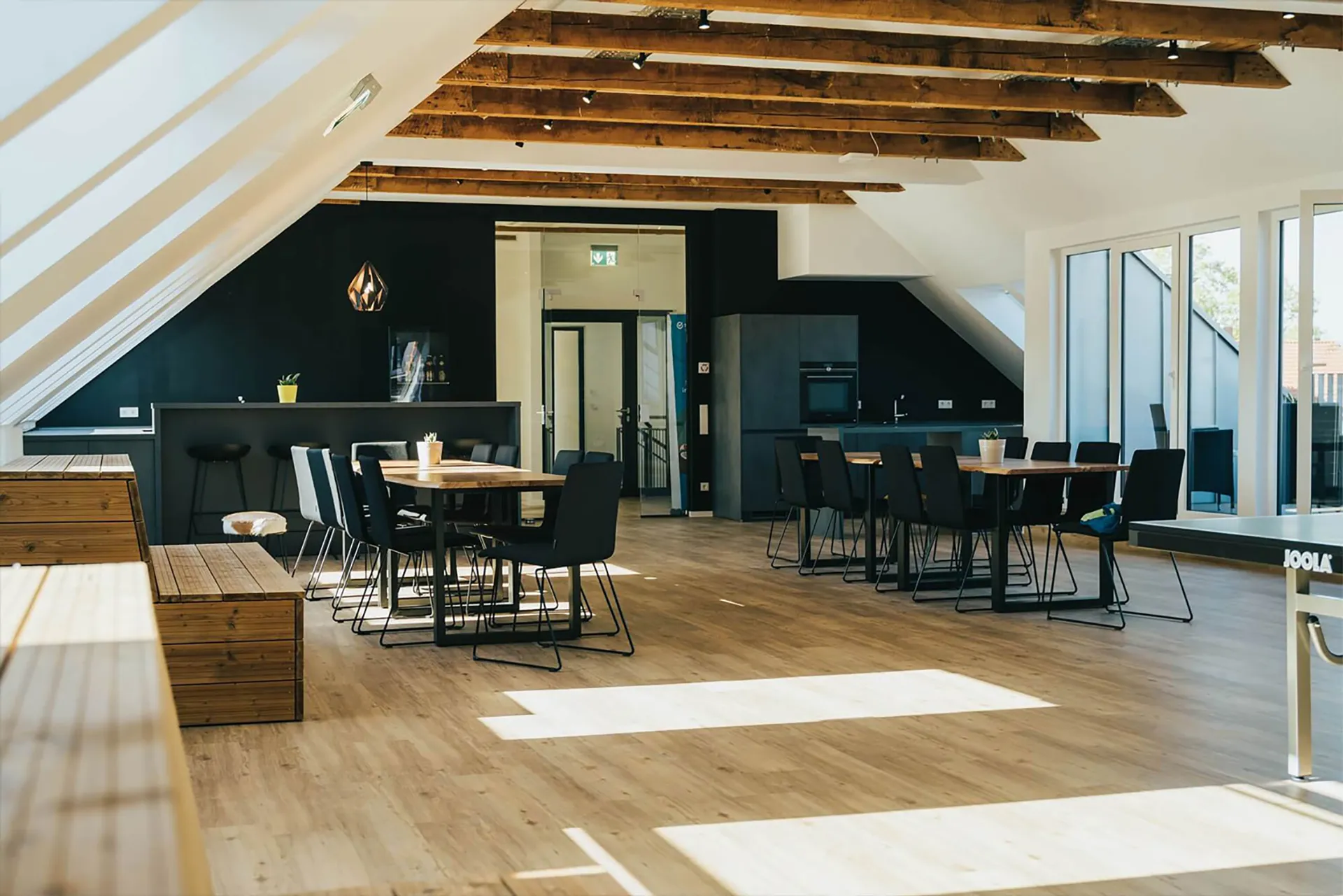 Du brauchst Platz zum kreativen Arbeiten? Dann ist die Wasserstelle der ideale Raum für dich. Mit Platz für bis zu 15 Kolleg:innen hebst du deinen Workshop auf die nächste Stufe.
