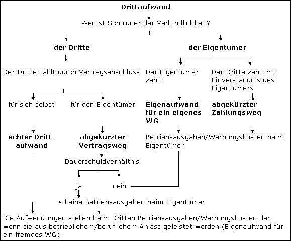 - Trägt ein Dritter Kosten, können sie als so genannter Drittaufwand nicht Betriebsausgaben oder Werbungskosten des Steuerpflichtigen sein.