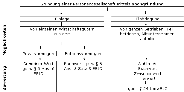 Grafisch kann die Gründung einer PersGes mittels Sachgründung wie folgt dargestellt werden: