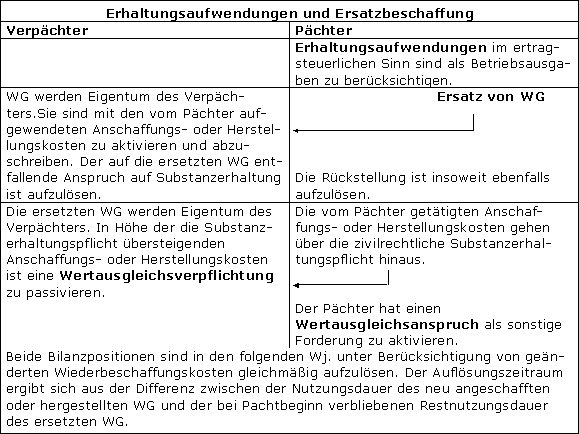 Abb.: Erhaltungsaufwendungen und Ersatzbeschaffung bei eiserner Verpachtung
