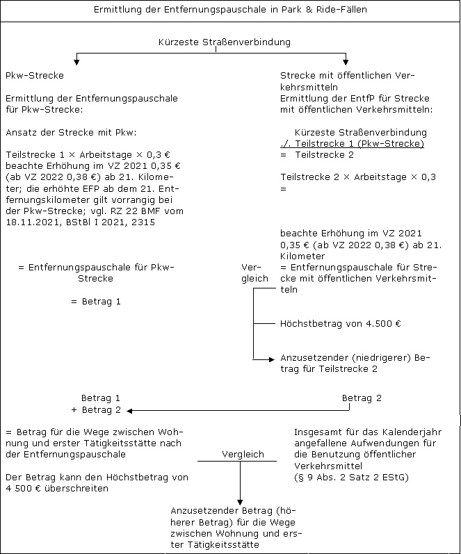 Zur Anwendung der Entfernungspauschale s. BMF vom 31.10.2013, BStBl I 2013, 1376 bzw. aktualisiertes Schreiben vom 18.11.2021, BStBl I 2021, 2315).