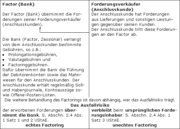 Gegenstand des Verfahrens war nur das sog. echte Factoring, d.h. das Geschäft, bei dem der Factor von seinem Anschlusskunden dessen Forderungen unter Übernahme des Ausfallrisikos aufkauft.
