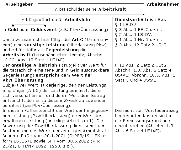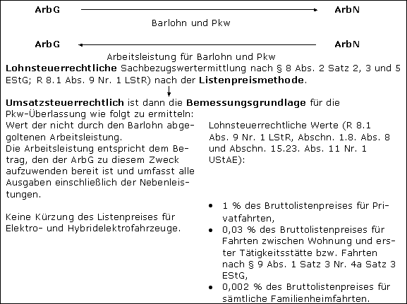 1 Fahrzeugüberlassung an Arbeitnehmer als Arbeitslohn sowie als umsatzsteuerrechtliche Leistung