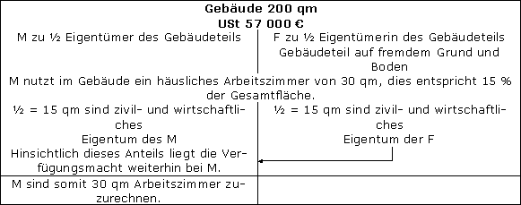 M nutzt im Gebäude ein häusliches Arbeitszimmer von 30 qm, dies entspricht 15 % der Gesamtfläche.