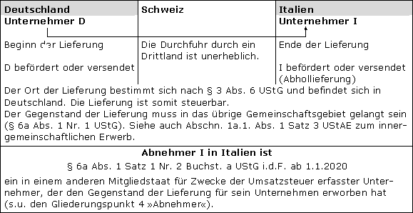 S. das Beispiel 2 zu Abschn. 4.1.2. Abs. 3 UStAE.