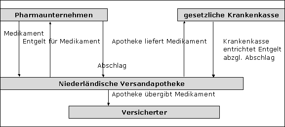 Die Apotheke H aus Holland liefert Medikamente an die deutsche Apotheke D bzw. direkt an den im Inland ansässigen gesetzlich Versicherten. Leistungsempfänger i.S.d. UStG ist nach § 2 Abs. 2 SGB V die gesetzliche Krankenkasse. Obwohl die deutsche Krankenkasse ihre deutsche USt-IdNr. gegenüber der Apotheke verwendet, stellt die Apotheke für die Lieferung USt in Rechnung.