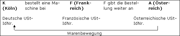bis zum Beginn der Beförderung oder Versendung verwendet der Zwischenhändler F gegenüber A eine USt-IdNr. des Mitgliedstaats des Beginns der Beförderung oder Versendung (österreichische USt-IdNr.):