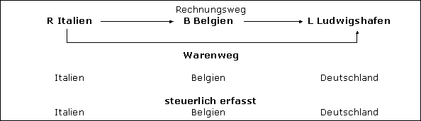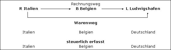 § 25b Abs. 1 Nr. 2 UStG: R, B und L sind in den jeweils verschiedenen Mitgliedsstaaten Italien, Belgien und Deutschland erfasst.