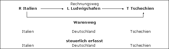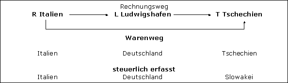 R aus Rom verkauft Pkw an L aus Ludwigshafen, der seinerseits die Pkw an T in Tschechien verkauft. R transportiert die Pkw mit eigenem Lkw direkt zu T. R und L benutzen jeweils die USt-IdNr. ihres Landes. T verwendet eine slowakische USt-IdNr.