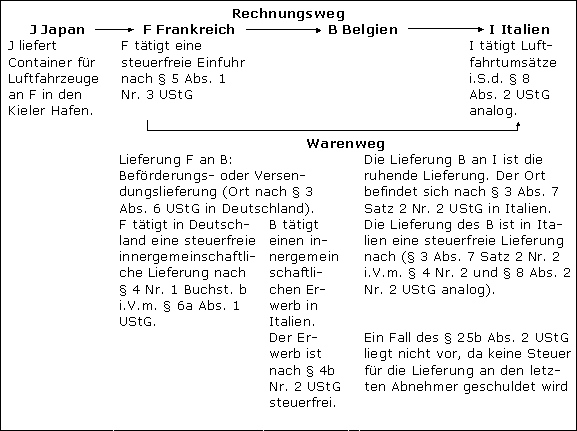 Da die Unternehmer in jeweils verschiedenen Mitgliedsstaaten für Zwecke der USt erfasst sind (§ 25b Abs. 1 Nr. 2 UStG), ist das innergemeinschaftliche Dreiecksgeschäft zu prüfen: