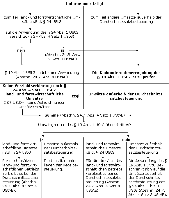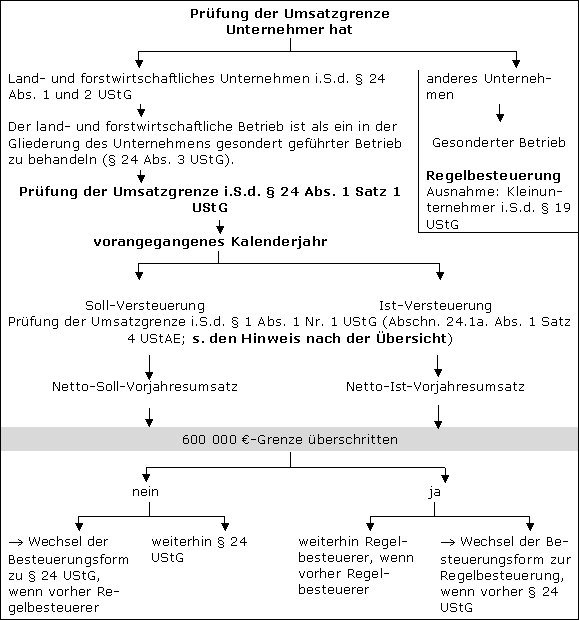 Ergänzend haben die obersten Finanzbehörden des Bundes und der Länder beschlossen, dass Umsätze aus der Teilnahme am Testbetriebsnetz Landwirtschaft aus verwaltungsökonomischen Gründen nach § 24 UStG zu besteuern sind, wenn der Unternehmer voraussichtlich keine Umsätze ausführen wird, die eine Verpflichtung zur Übermittlung einer Umsatzsteuererklärung für das Kj. nach § 18 Abs. 3 oder 4a UStG nach sich ziehen.