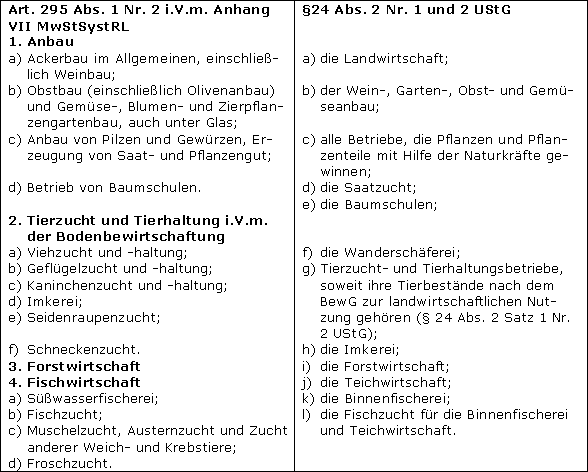 3.7.2 Der land- und forstwirtschaftliche Betrieb nach der MwStSystRL und dem UStG im Überblick