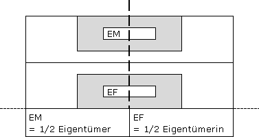 EM und EF haben gemeinsam ein bebautes Haus zu je 50 % erworben; die Gebäude-AK betragen 500 T€. Jeder nutzt ein Arbeitszimmer (anteilige AK: je 30 T€) alleine.
