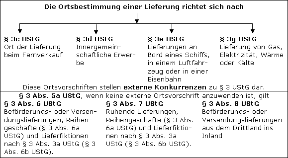 Nach § 3 Abs. 5a UStG sind vorrangig die Ortsvorschriften der §§ 3c bis 3g UStG zu prüfen.