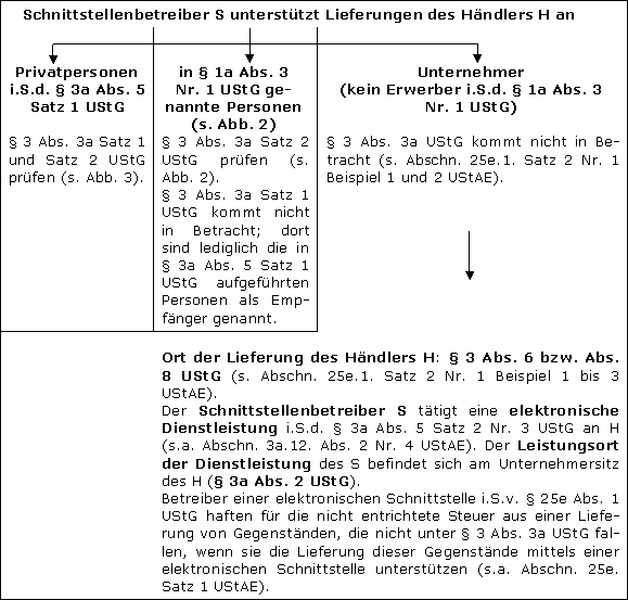Zu beachten ist noch, dass unter den Voraussetzungen des § 25e UStG der Schnittstellenbetreiber für die nicht entrichtete Steuer des Händlers haftet (→ Umsatzsteuerhaftung und Meldepflichten im Internethandel).