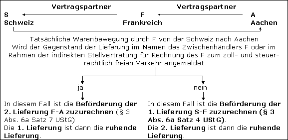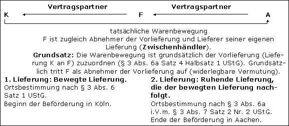 Die Neuregelung sowohl des Art. 36a MwStSystRL als auch des § 3 Abs. 6a UStG umfasst insbes. die Zuordnungsregelung der bewegten Lieferung an den – bzw. durch den – mittleren Unternehmer (Zwischenhändler).