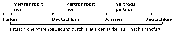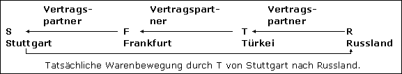Warenbewegung unmittelbar vom ersten Lieferer an den letzten Abnehmer.