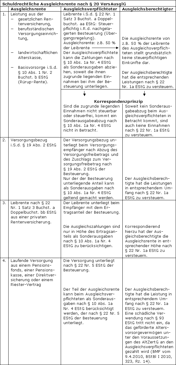 7.7.2 Einkommensteuerrechtliche Behandlung von Ausgleichszahlungen im Rahmen des Versorgungsausgleichs