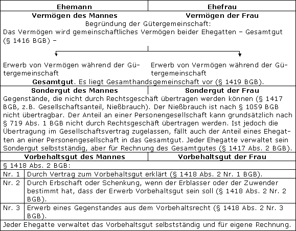 Bei der Gütergemeinschaft sind die folgenden Vermögensmassen zu unterscheiden: