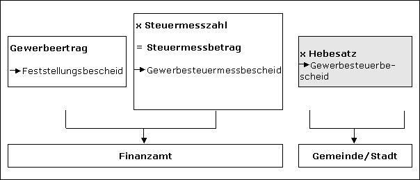 Die gewerbesteuerlichen Feststellungen trifft das FA im Gewerbesteuermessbescheid als Grundlagenbescheid, während im Gewerbesteuerbescheid als Folgebescheid lediglich der Hebesatz auf den Gewerbeertrag angewendet wird. Soweit es also um den Gewerbesteuermessbescheid geht, ist zuständig bzw. Verfahrensgegner das FA, soweit die Höhe der Steuer selbst etc. betroffen ist, das Steueramt der jeweiligen Gemeinde. Dementsprechend sind auch die außergerichtlichen und gerichtlichen Rechtsbehelfe unterschiedlich.