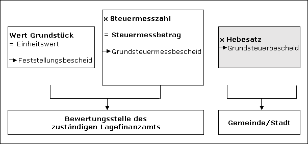 Der Einheits- bzw. Grundsteuerwert wird mit der Steuermesszahl (§§ 14, 15 GrStG) multipliziert; Ergebnis ist der Steuermessbetrag (§ 13 GrStG), der durch einen Grundsteuer-Messbescheid festgesetzt wird (§ 184 Abs. 1 Satz 1 AO). Auch das ist Aufgabe der Bewertungsstelle des zuständigen Lagefinanzamts (§ 22 Abs. 1 Satz 1 AO). Dieser Steuermessbescheid bildet die Grundlage für die Festsetzung der Grundsteuer durch die zuständige Gemeinde (→ Grundsteuer); er ist ein sog. Grundlagenbescheid für den Folgebescheid.