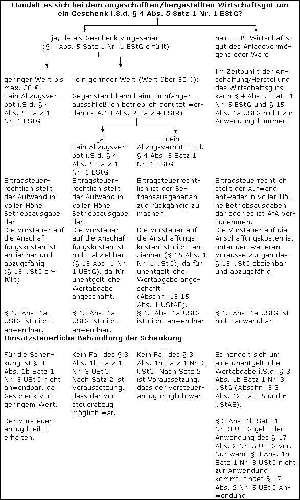Zu beachten ist, dass der Betriebsausgabenabzug des Schenkers nach § 4 Abs. 5 Satz 1 Nr. 1 oder 10 EStG eingeschränkt ist (s.a. Hoffmann in Littmann/Bitz/Pust zu EStG § 6, Rz. 1100 ff., LEXinform 0812023).