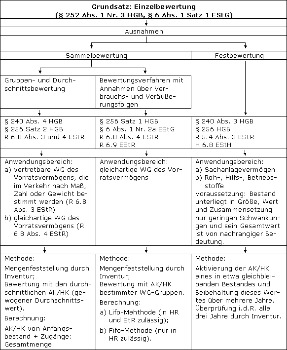 Gleichartige WG des Vorratsvermögens können gem. R 6.8 Abs. 4 EStR zu einer Gruppe zusammengefasst und mit dem gewogenen Durchschnittswert angesetzt werden. Die jährliche Inventur ist weiterhin erforderlich; eine Vereinfachung ergibt sich nur bei der Bewertung.