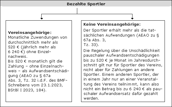 Ist mangels ausreichender Aufzeichnungen nicht nachvollziehbar, inwieweit tatsächlich Aufwand bei den einzelnen Sportlern angefallen ist, und ist deshalb nicht überprüfbar, ob bei allen Sportlern die ihnen jeweils geleistete Zahlung nicht über eine Aufwandsentschädigung hinausgeht, schließt dies die Annahme eines Zweckbetriebs nach § 67a Abs. 3 Satz 1 AO aus (BFH vom 3.8.2022, XI R 11/19, BStBl II 2023, 202). In diesem Fall ist § 12 Abs. 2 Nr. 8 Buchst. a UStG ausgeschlossen (s.o. den Gliederungspunkt »Besonderheiten bei sportlichen Veranstaltungen nach § 67a AO«). |
