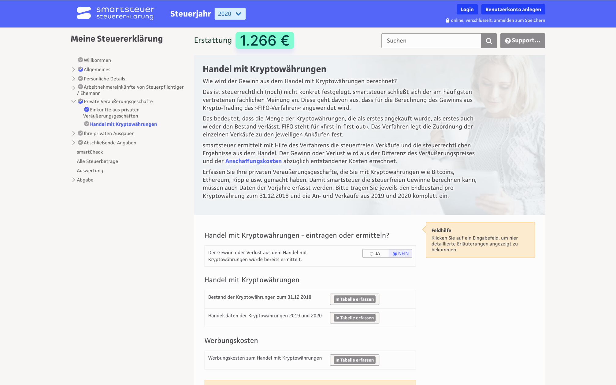 - Bitcoins und die Steuererklärung mit smartsteuer